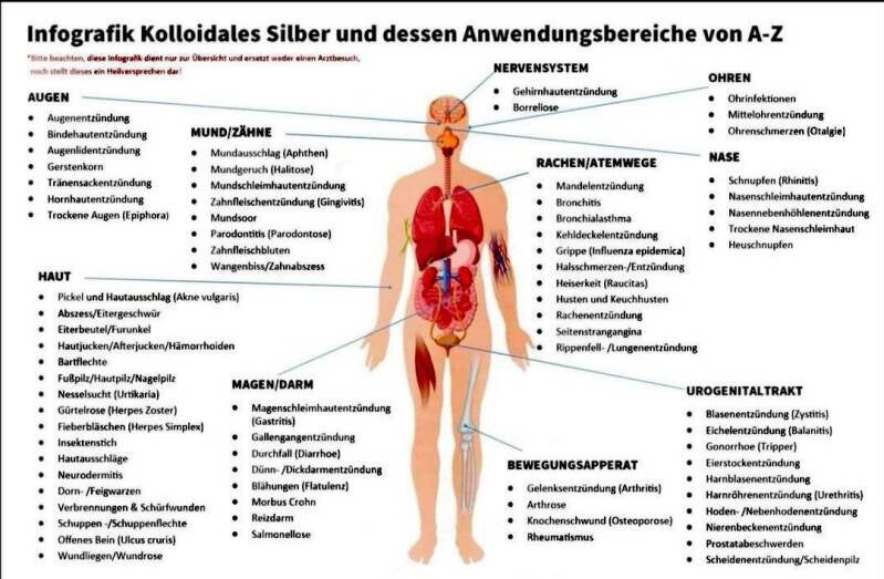 Bitte beachten Sie, dass ich weder Arzt noch Heilpraktiker bin. Die folgenden Informationen basieren auf allgemeinem Wissen und Erfahrungen, sind jedoch nicht als medizinischer Rat zu verstehen. Bevor Sie kolloidales Silber verwenden, empfehle ich dringend, sich ärztlich beraten zu lassen.