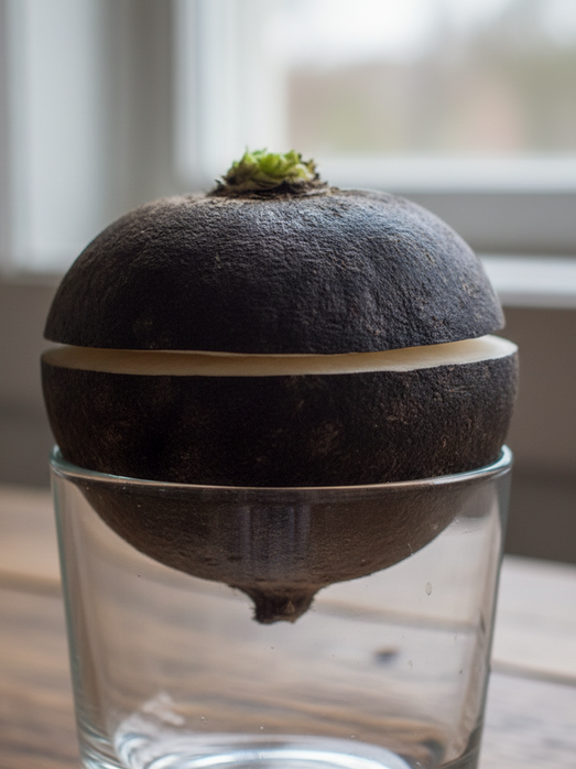 - Den Rettich auf ein Glas oder in eine Schale stellen.